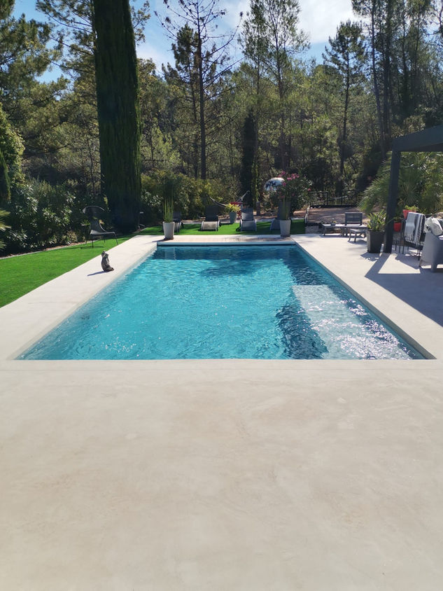 La finition est réalisée avec une résine colorée et brillante qui donnera à votre piscine sa teinte finale. La couleur est personnalisable.